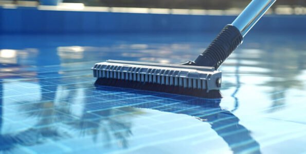 Skimming involves removing leaves, twigs, insects, and other debris from the surface of the pool using a skimmer net or skimming tool.